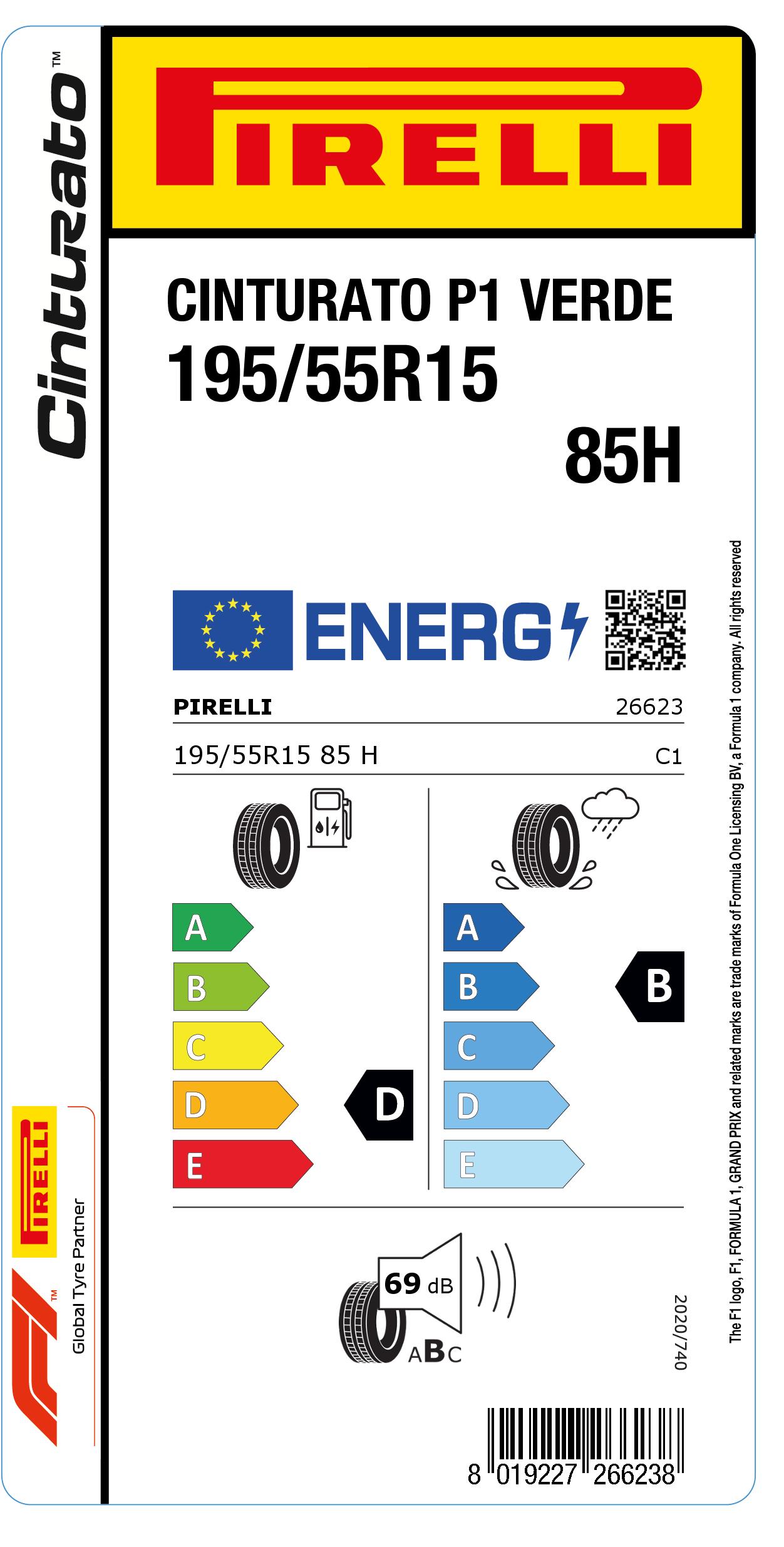 195/55R15 PIRELLI P1 CINTURATO VERDE 85H