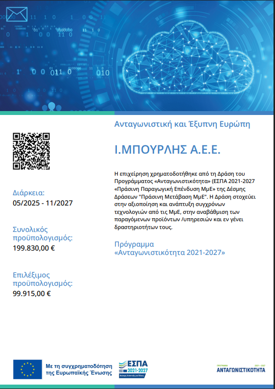 Η εταιρία Ι. ΜΠΟΥΡΛΗΣ Α.Ε.Ε. ασχολείται με το εμπόριο ελαστικών όλων των κατηγοριών(ι.χ επιβατικά, μοτό, αγροτικά, 4χ4, ελαφρά φορτηγά, φορτηγά, βιομηχανικά) αλλά και με το εμπόριο ειδών αυτοκινήτων, όπως ζάντες, αναρτήσεις, μπαταρίες, λιπαντικά και αξεσουάρ. Η εταιρία ξεκίνησε με τη μορφή ατομικής επιχείρησης το 1970 , για να δημιουργηθεί το 2001 η σημερινή εταιρία με την ονομασία Ι. ΜΠΟΥΡΛΗΣ Α.Ε.Ε. Επίσης, απο το 2018 η εταιρεία αποτελεί εξουσιοδοτημένο αντιπρόσωπο της Prometeon για την διανομή των ελαστικών φορτηγών Pirelli και των θυγατρικών της Tegrys, Formula και Anteo, καθώς και των εταιρειών Otani, Armstrong και Zeetex